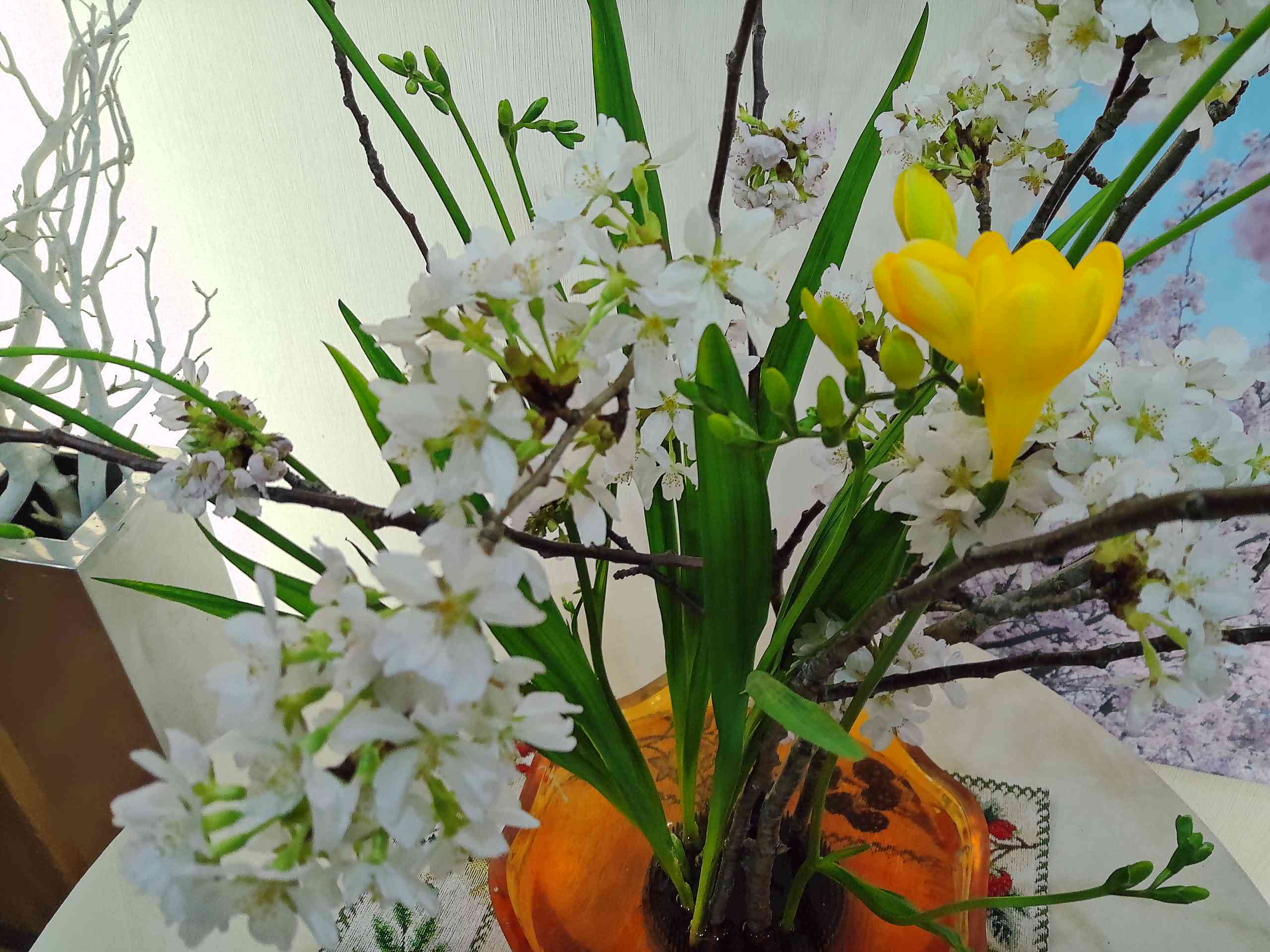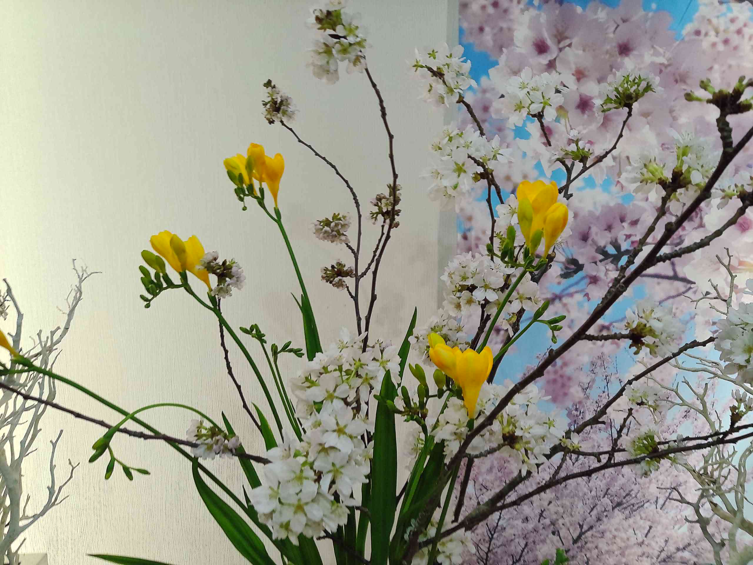 エントランスのお花ですが、椿が満開になる前に残念な事に枯れてしまい・・別のお花に交換となりました。