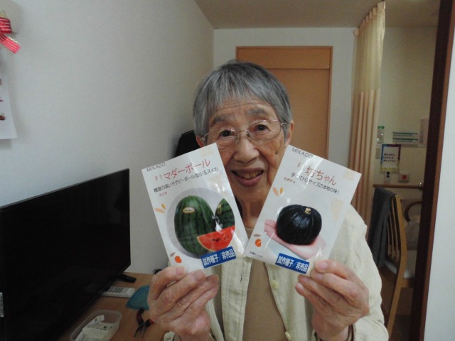 季節が変わり、そろそろ暖かくなってきましたので【はぴね屋上菜園】でまたお野菜を育てる時がやってまいりました\(^o^)/今日はたくさんの苗が勢ぞろい✨✨ミニトマト、ジャンボピーマン、きゅうり、ネギ。そして、ご入居者様が種の頃から育ててくださっていました、スイカとかぼちゃの苗です‼ちゃんと芽が出てなんとこんなに大きくなりました(*^▽^*)たくさんお野菜が出来るといいな~♬