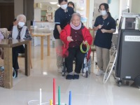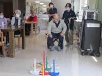 こんにちはデイサービスです。今日のレクリエーションは皆様に大好評の輪投げです。レクが始まる前から「中々入らないんだよ笑」「難しいよね笑」と楽しそうに会話されていました。いざレクが始まると、皆様真剣な表情になられ取り組まれて最高得点!な、なんと!第一位H様1290点、第二位K様920点、第三位N様745点と皆様お上手でした。点数はどうであれ他の皆様もお上手でデイルームが笑い声で賑やかになりとてもよかったです。(*^^)v