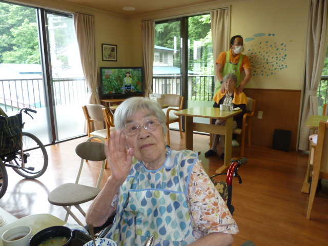 今回は創作レクリエーションで、6月の誕生花あじさいを作り、あじさいに見立てたゼリーを召し上がって頂きました😋