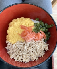 お昼ご飯は三色丼でとてもおいしそうでしたよ!みなさんあっという間に召し上がられていました!