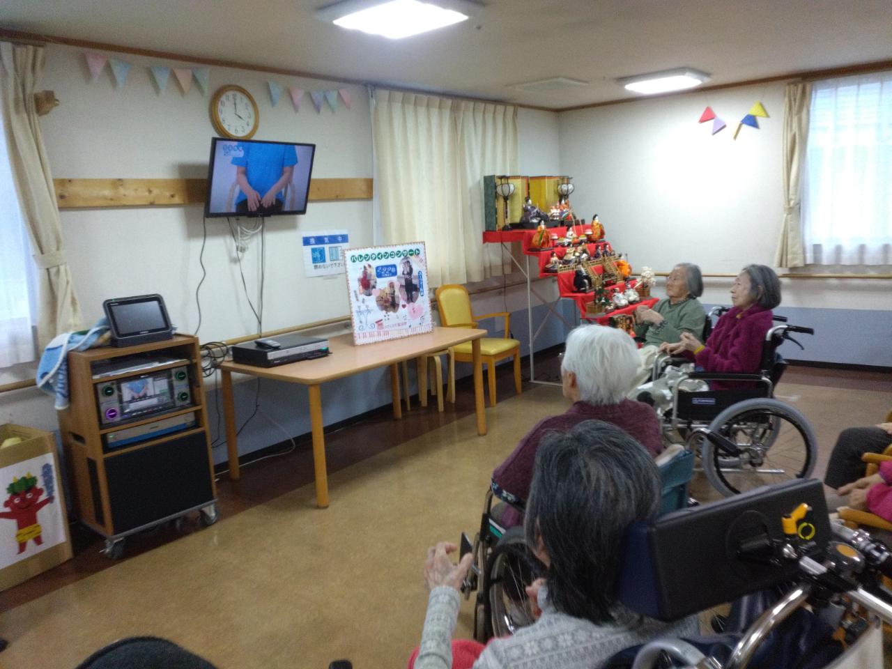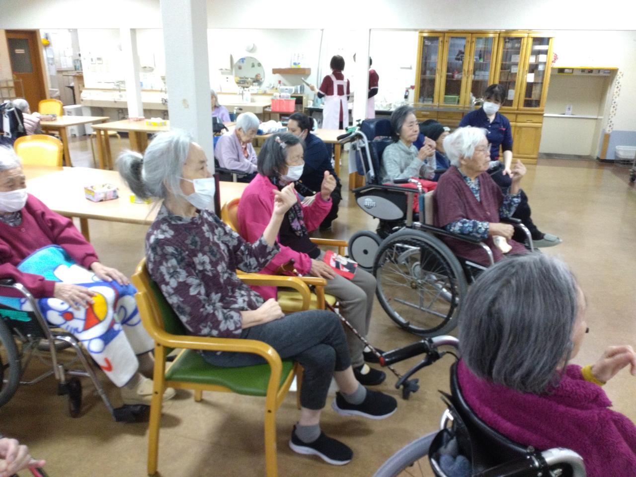 カラオケに搭載している手指運動をみんなで実践しました。