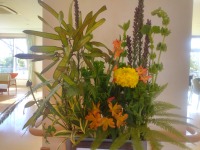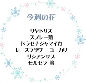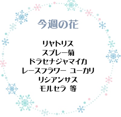 リヤトリス🌺、モルセラ🌺、ミニグラジオラス🌺、ドラセナインディオ🌺、アンブレラファン🌺、菜種🌺、ギンネム🌺、マリーゴールド等🌺になります🌺