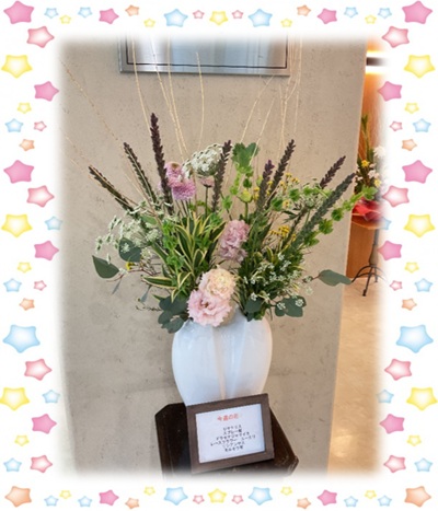 今週のエントランスフラワーもとても綺麗に活けていただきました(´∀`*)ウフフいつも素敵なお花をありがとうございます<m(__)m>