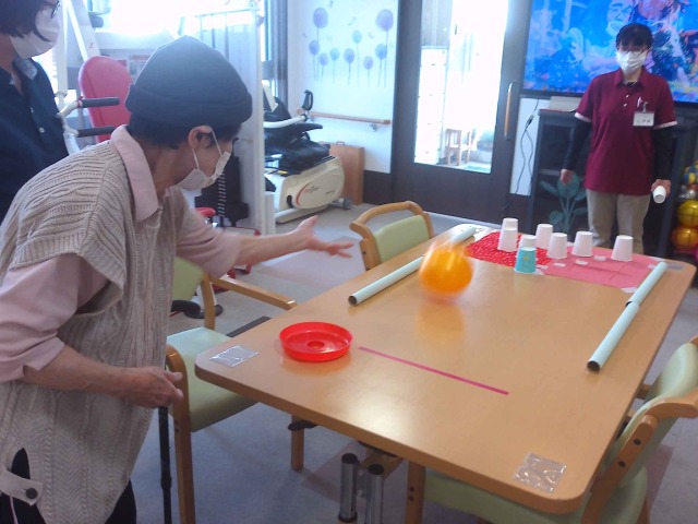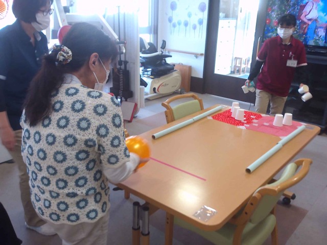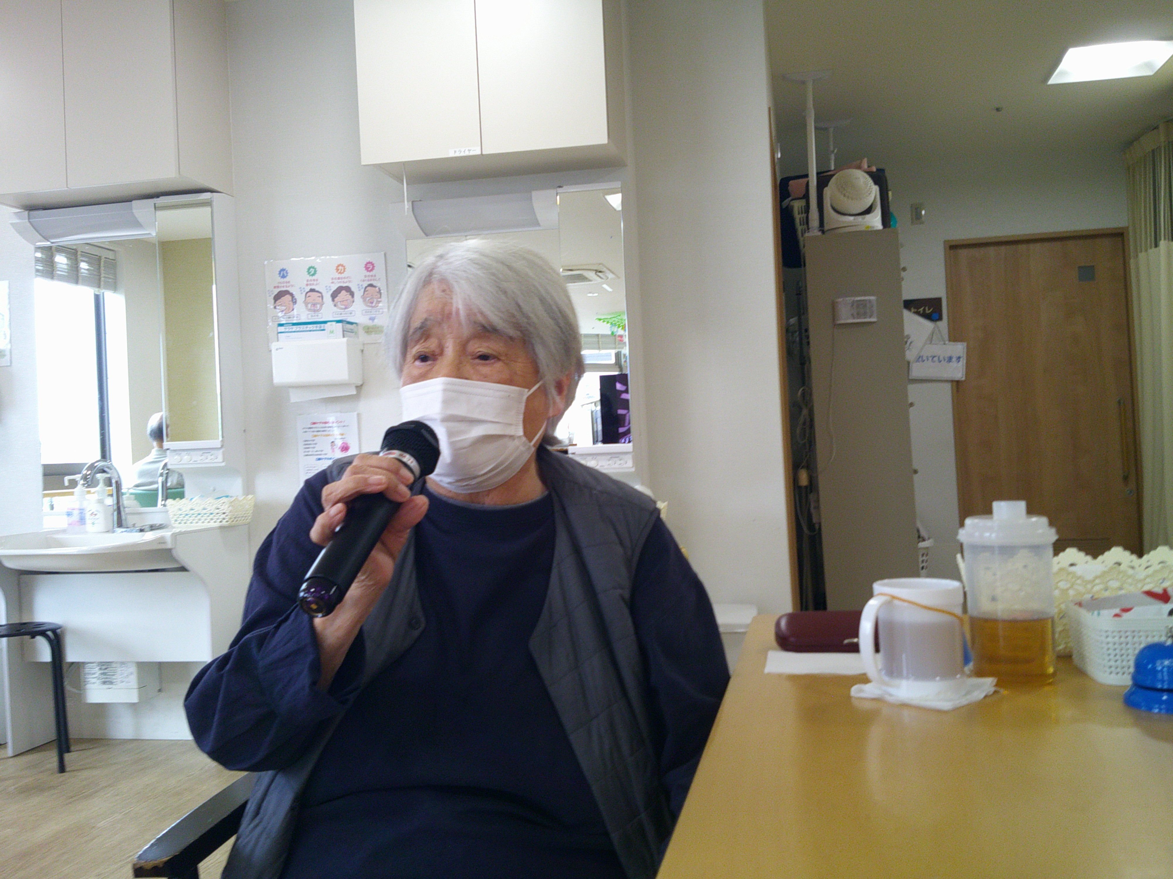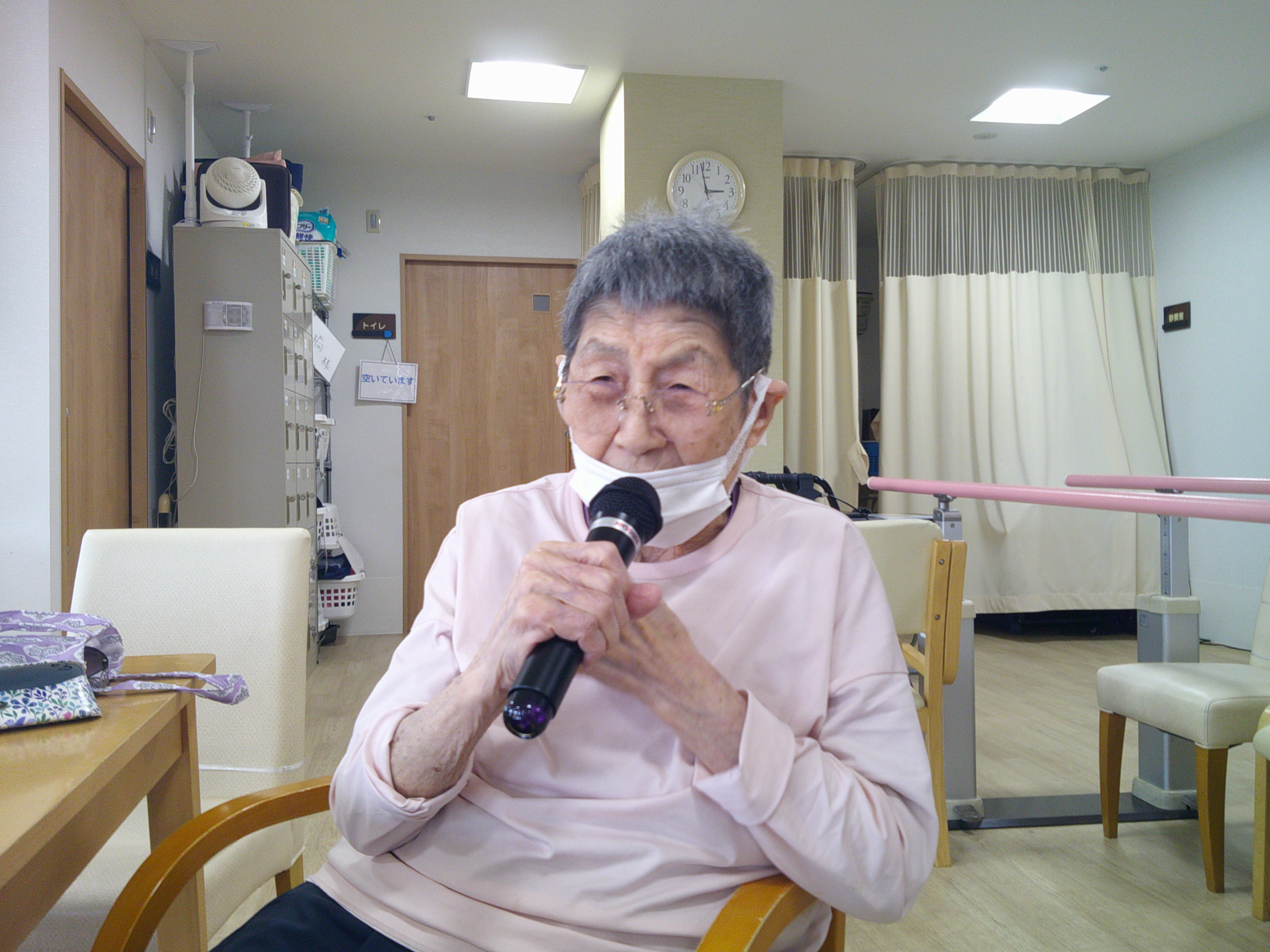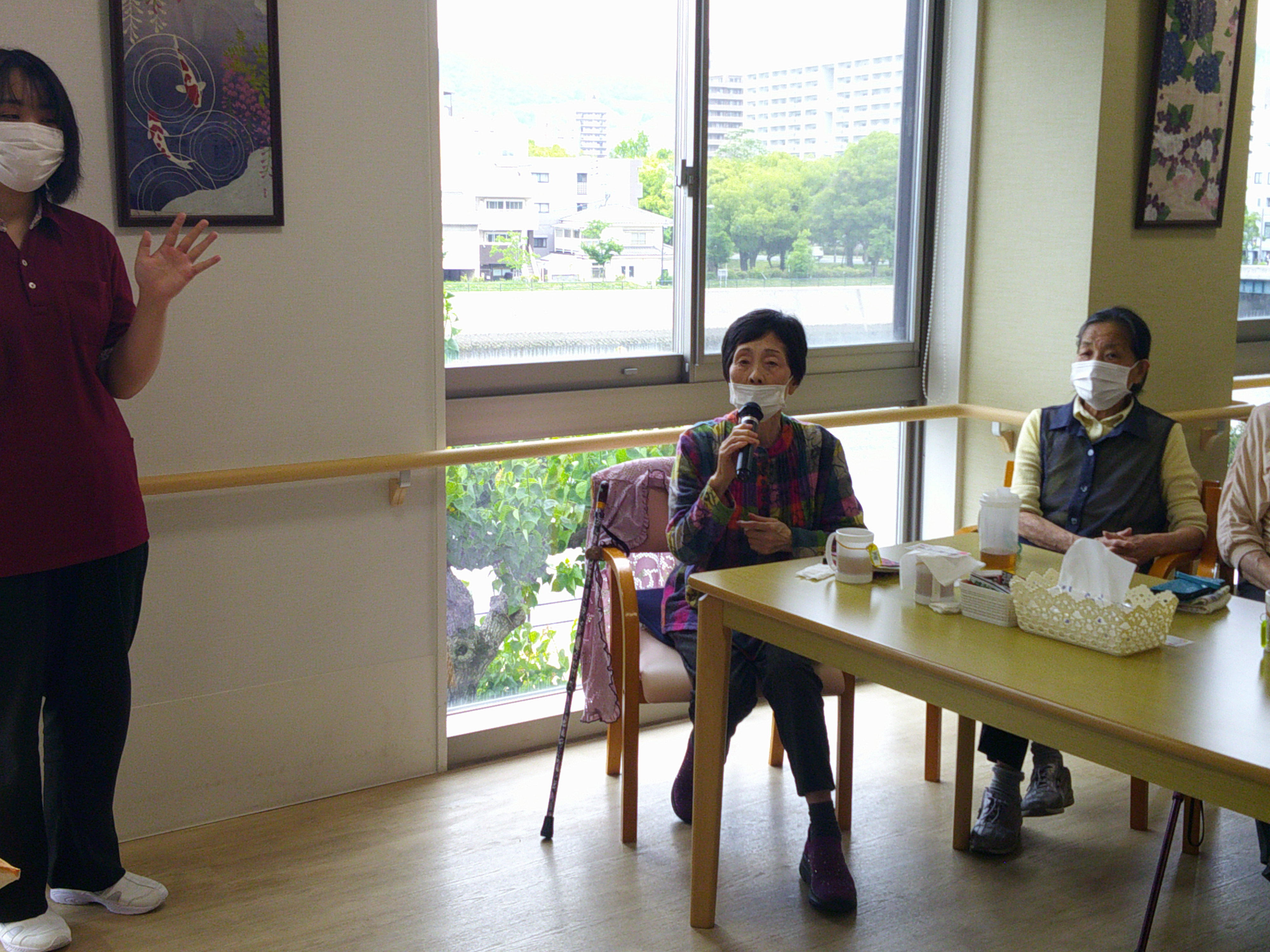今日は、皆様で3文字しりとりをしました。リンゴからスタート・・ゴジラ、ラクダ、だんご・・こんな具合に3文字でしりとりをしていきます。順番にお一人ずつ答えていっていただきます。頭を悩ませる時間が脳に良いと言われています。皆様、今日はとても良い脳トレをしましたね(^-^)