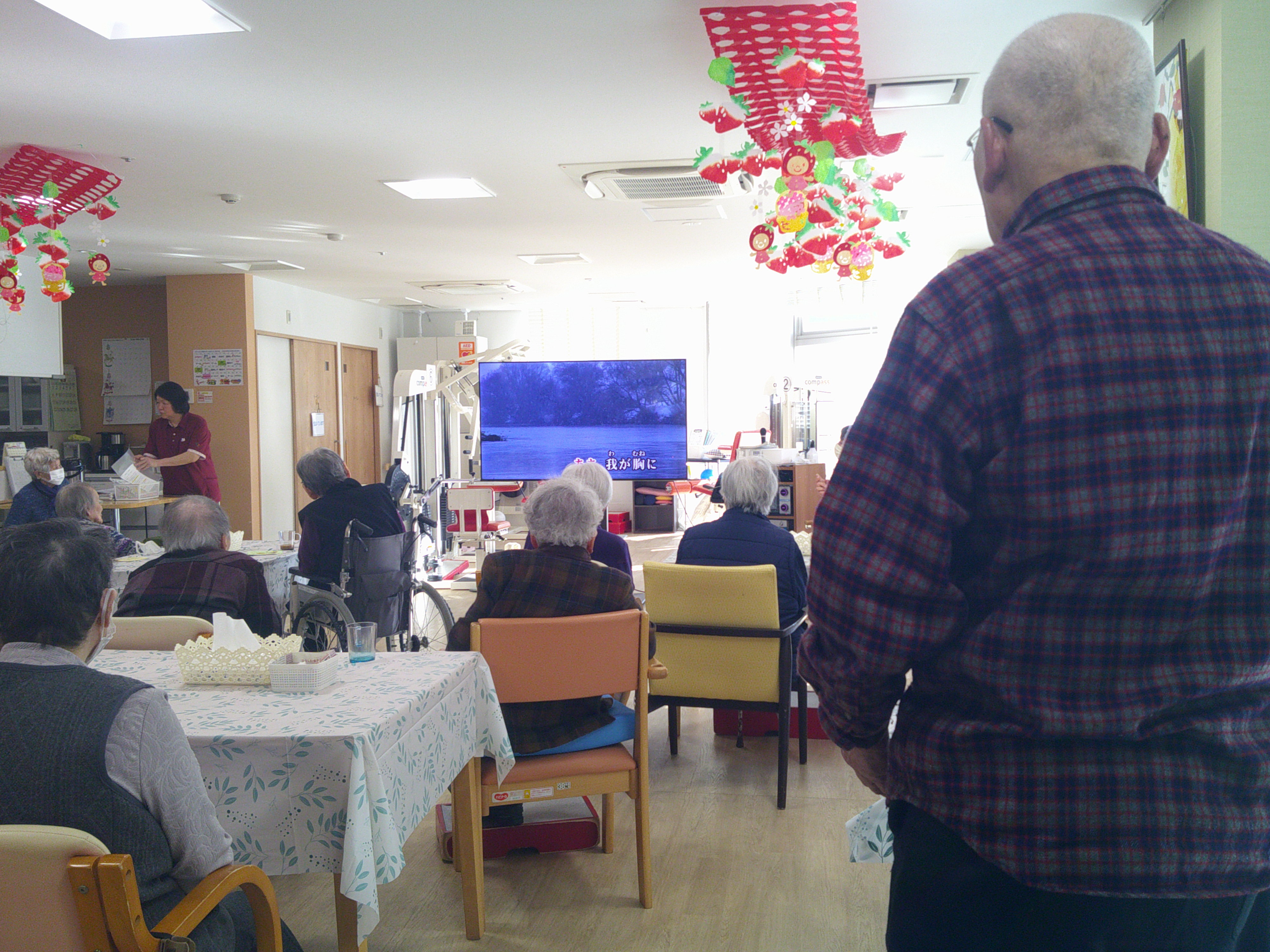 皆様でテレビ画面を囲みながら、懐かしの名曲を楽しむ穏やかな時間となりました。
