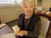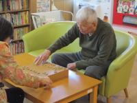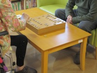 リハビリ後に機能訓練指導員お手製の「絵あわせかるた」を楽しまれています。