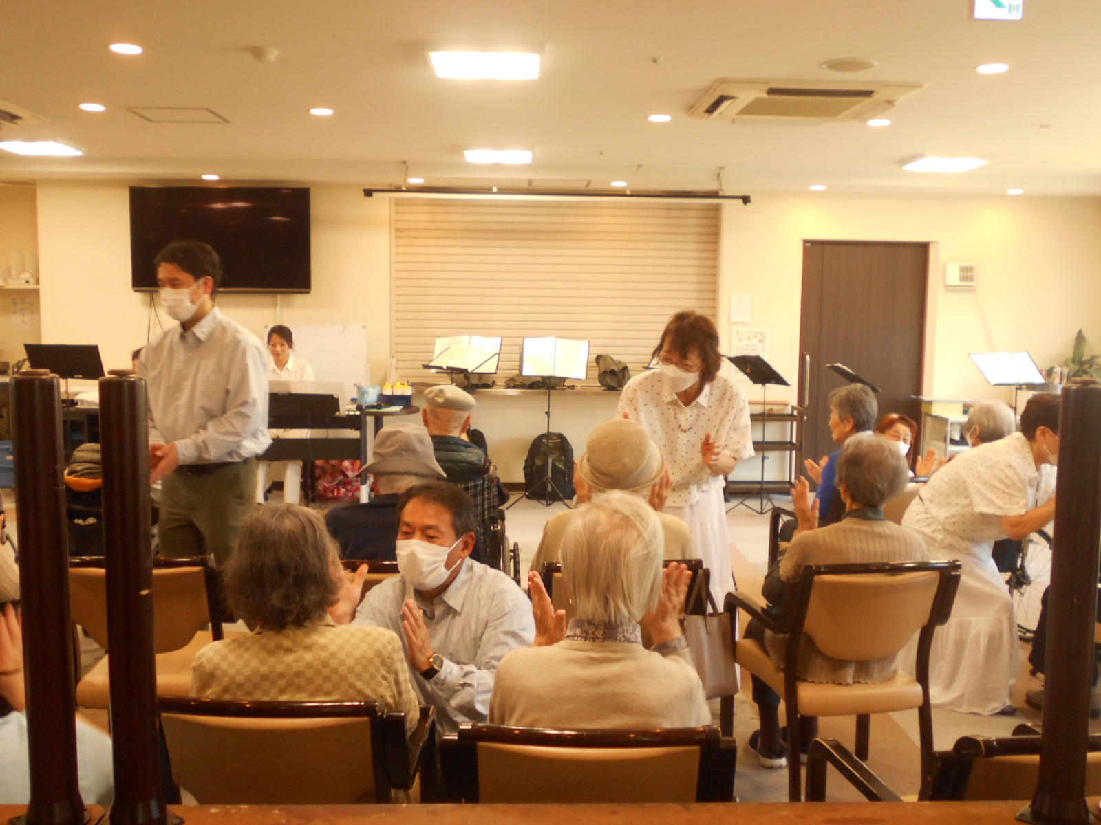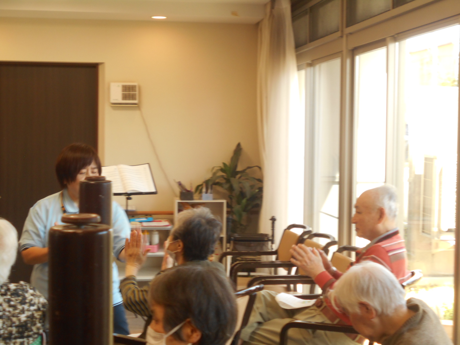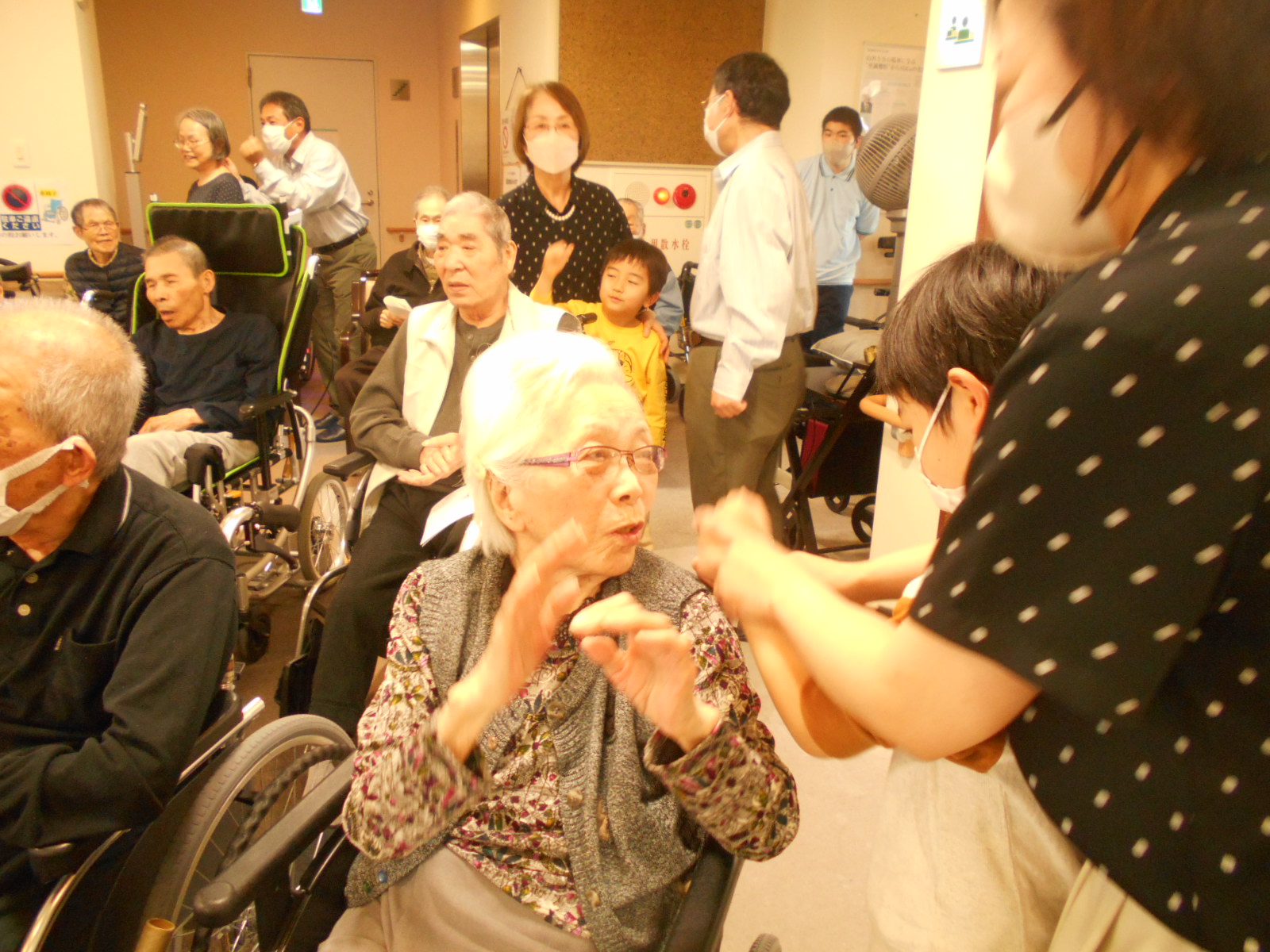 音楽に合わせて手遊びをしコーラス隊の皆様とふれあい入居者様の笑い声や笑顔が素敵で楽しい時間を過ごさせて頂きました。