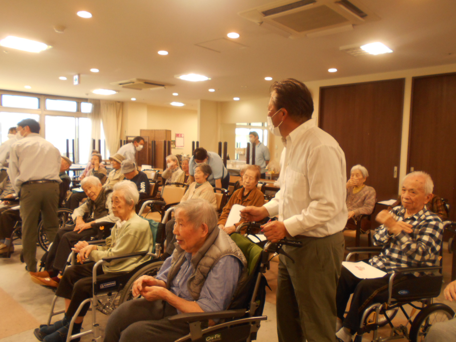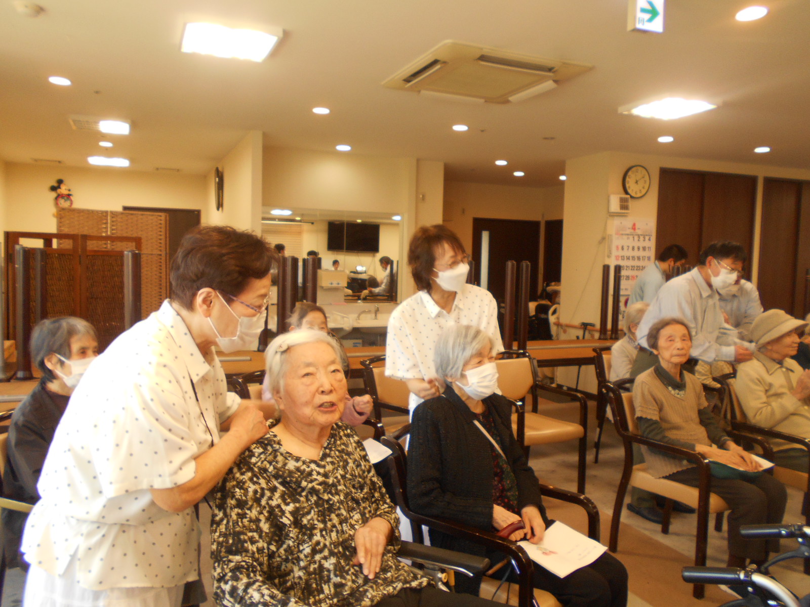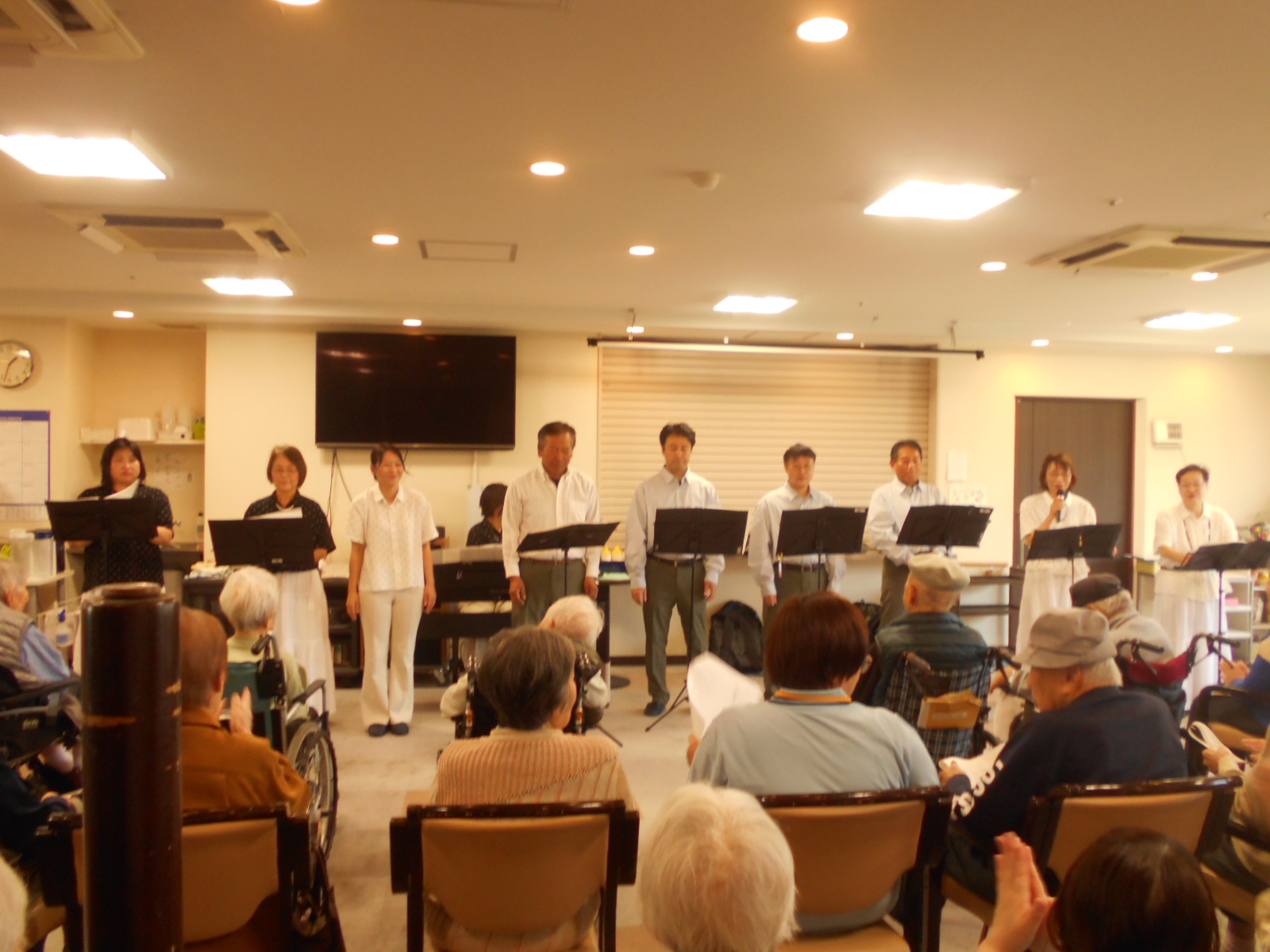 音楽に合わせて手遊びをしコーラス隊の皆様とふれあい入居者様の笑い声や笑顔が素敵で楽しい時間を過ごさせて頂きました。