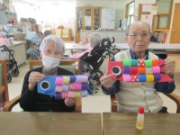 こんにちはデイサービスです。本日は制作ということで色画用紙と折り紙を使って鯉のぼり作りに取り組んで頂きました。お好きな色画用紙を選んでいただき、鯉のぼりの土台をまずは作り、そこにウロコに見立てた折り紙の輪っかを並べて貼っていただきました(^^♪ 折り紙は水玉、ストライプ、和柄、無地など様々な色や柄の物を皆様に選んでいただき輪っかを作ってもらいました。色鮮やかな輪っかを土台に貼り付け、ひげや目玉をつけたら完成です(^^♪ みなさま楽しそうに輪っか作りに取り組みオリジナルの鯉のぼりを作っておりました♪ しばらくはデイの展示コーナーに飾らせていただき、その後皆様にお渡しさせていただきまーす\(^_^)/