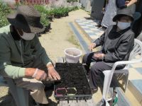 5月とは思えない暑さでしたが、外活動にはもってこいの晴天の中、協力して枝豆の種を植えました。