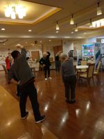 1階でも機能訓練指導員とおこなっています。日曜日は機能訓練指導員がお休みの為私が一緒に行ったのがきっかけで私も毎日行うようになりました。先月の血液検査の数値が良くなっていました。「継続は力なり」で毎日の積み重ねが大事だと思い皆様にもお伝えしています。