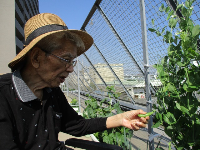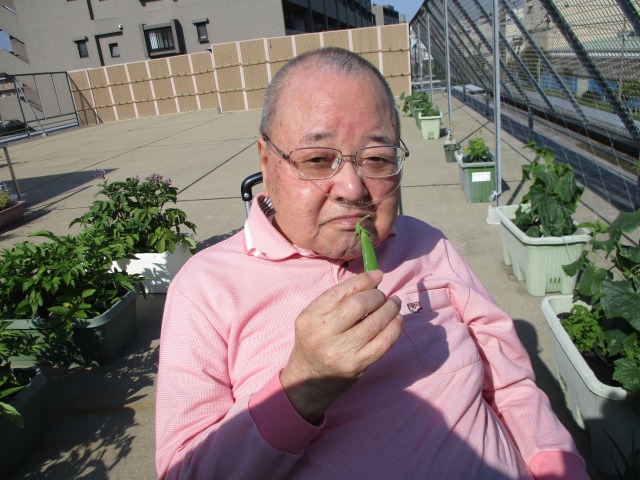 今日は青々とした【スナップえんどう】です🌟看護師さんが調理し、夕食に味見させてもらいましたが、豆の味がしっかりしていてとても甘くておいしかったです(*^-^*)味付けは塩だけ‼ご利用者様も絶賛✨✨✨また食べたいな~(^^♪