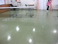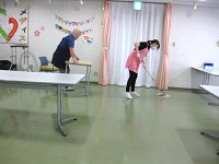 入居者様がお部屋で食休みをされている時間に、スタッフがホールの水拭きをしてくれていました。