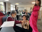 こんにちは、シーハーツ柏です。 前回に引き続き、ミニコンサートのご紹介です。トランペットとピアノのアンサンブル演奏を楽しんでいただきました。 曲の合間には、楽器の特徴について詳しく説明していただき、入居者様も「へぇ~。」と、目を輝かせていらっしゃいました。演奏後は、実際に楽器に触れていただき、重さやボタンの押し加減を体感されています。 「トランペットってこんなに重いんだね。これを持って演奏しているんだから、大変ですね。」と、男性の入所者様も驚きです。演奏家さんとの交流も、よい刺激になりました。ミュージックセラピーオーケストラのスタッフさん、ご来館ありがとうございました。特別な母の日を過ごされています。