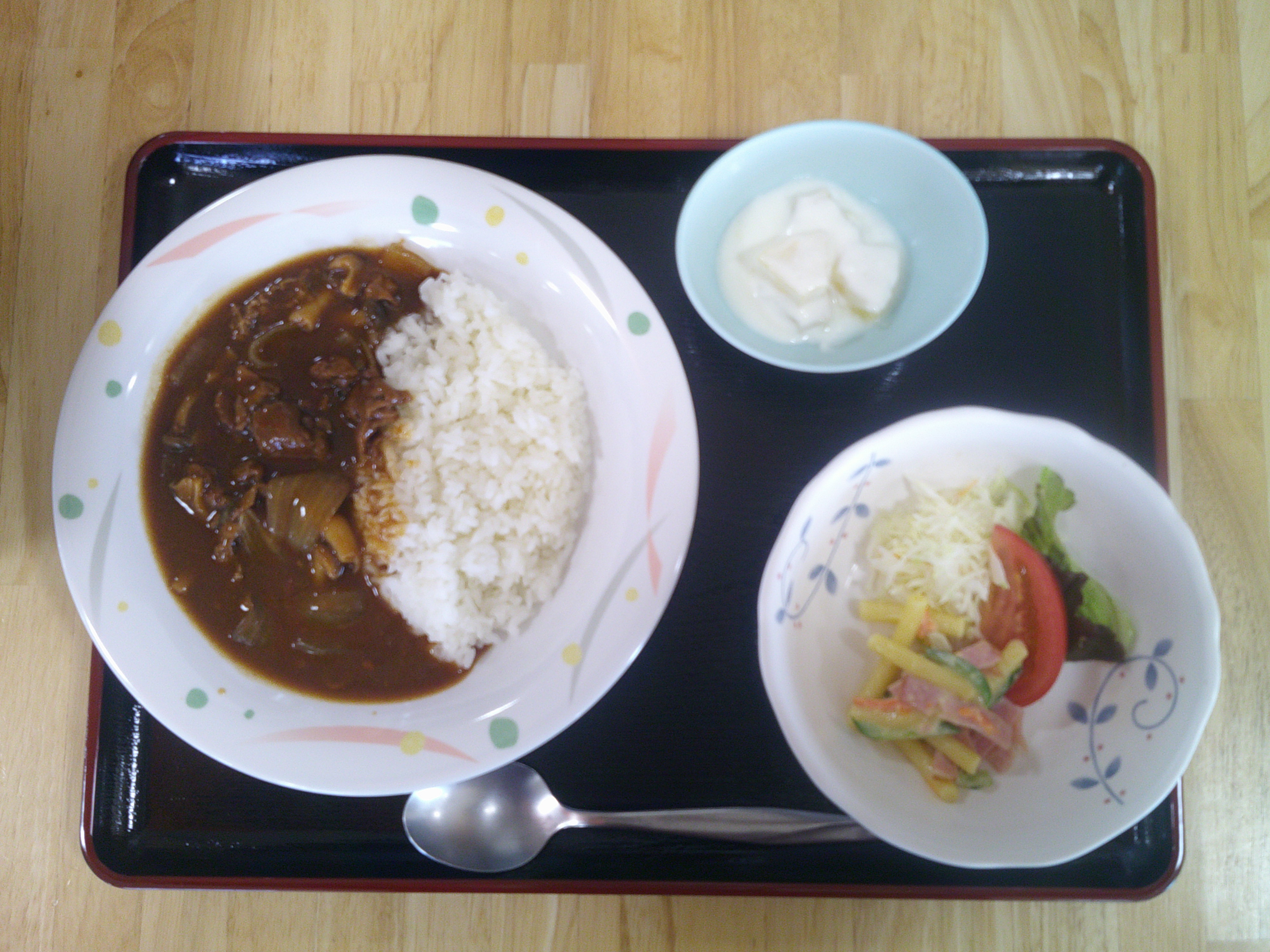 献立のメニューは、クリームシチューときのこのソテー、ブロッコリーの和風サラダにフルーツ付きです。