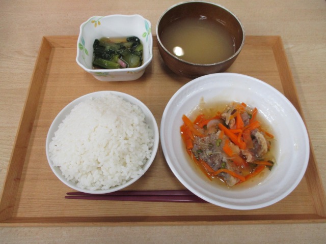 メニューは・・ *ご飯 *めばるの南蛮漬け *青菜のさっと煮 *味噌汁