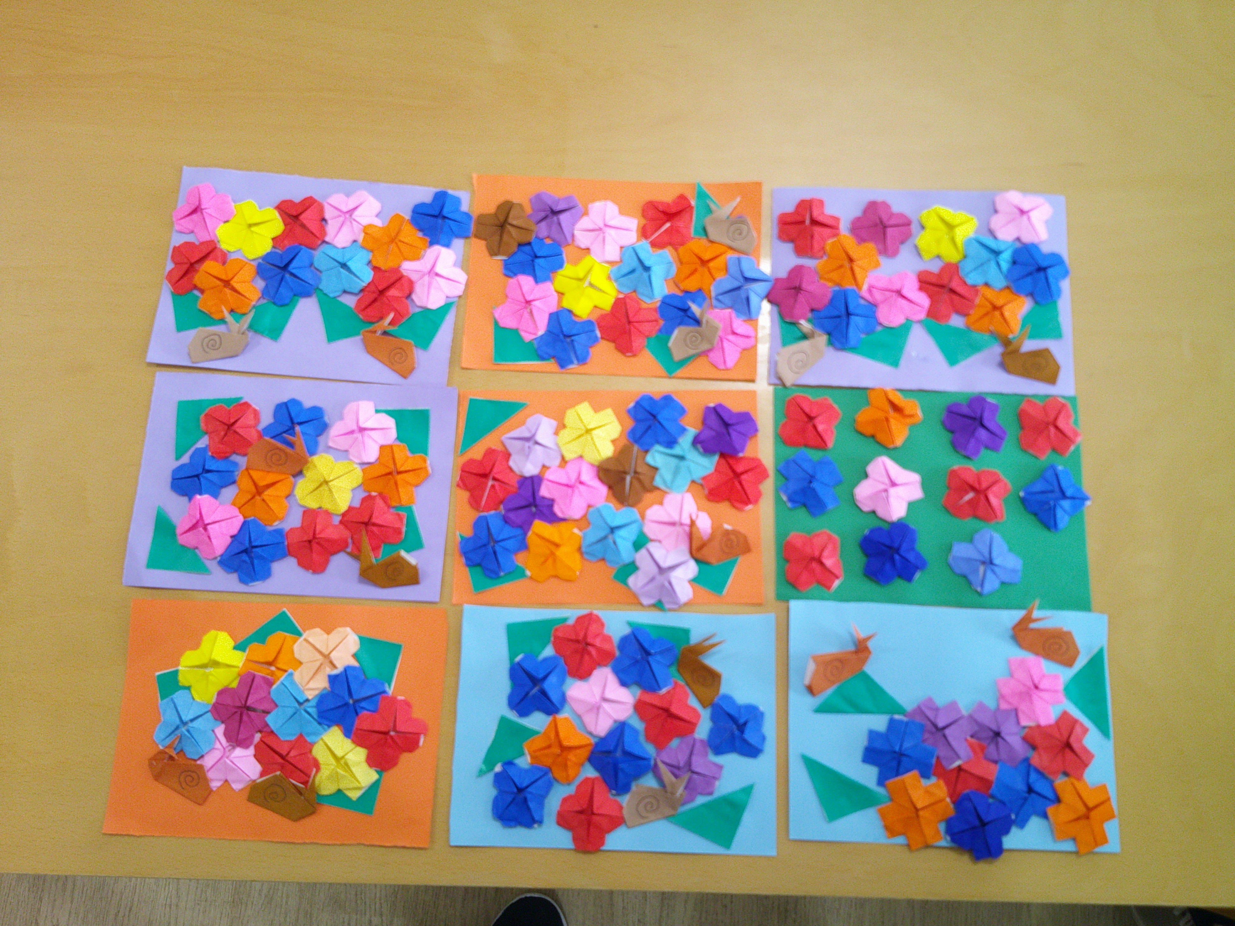 折り紙であじさいを作りました\(^o^)