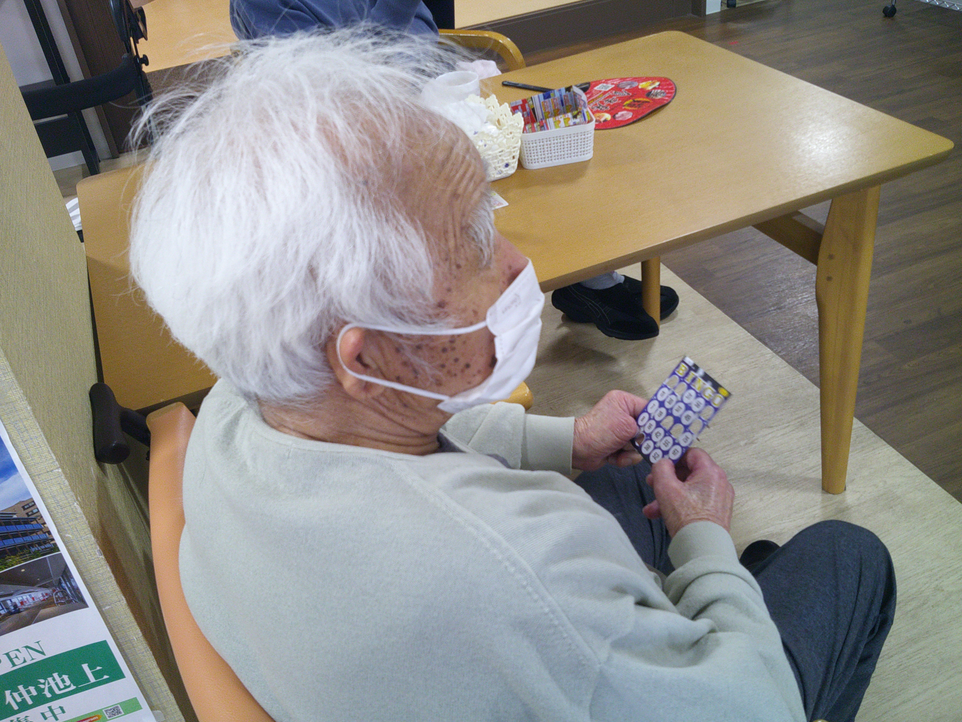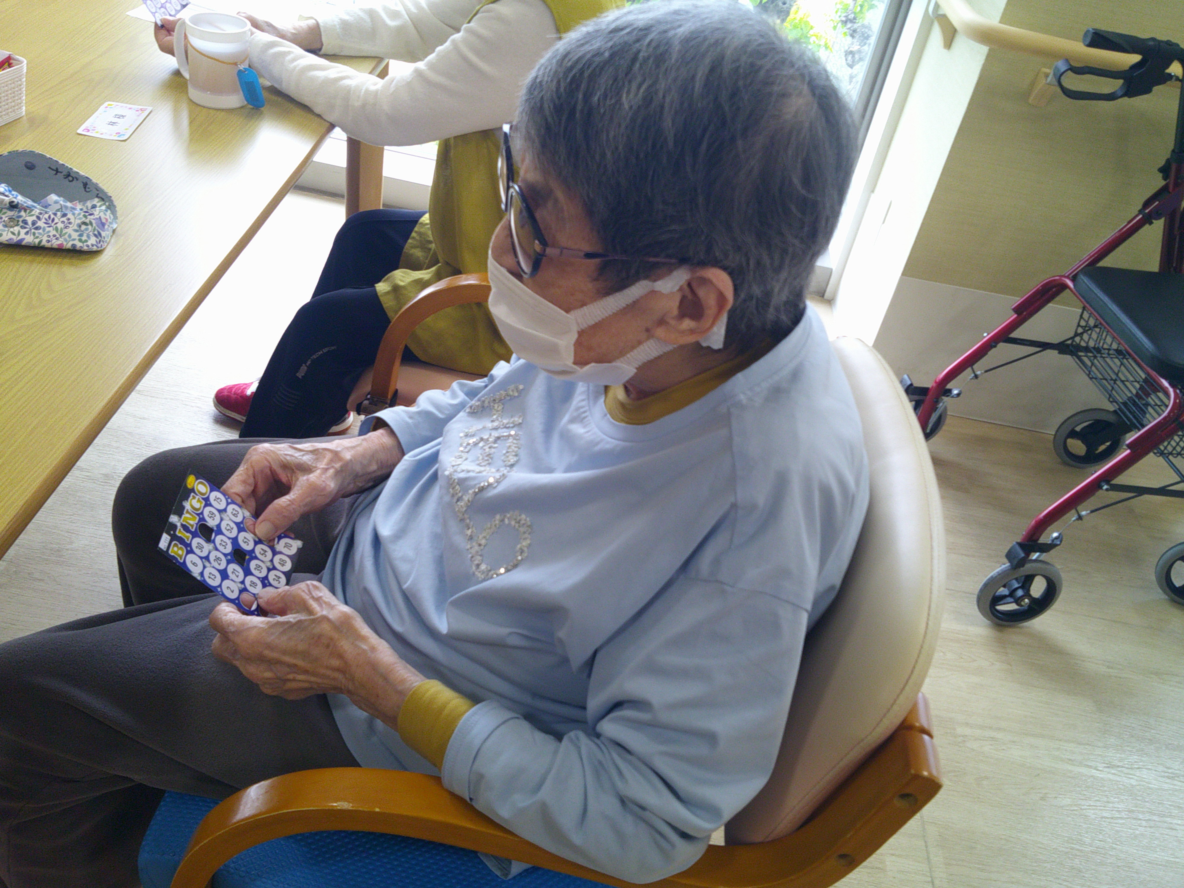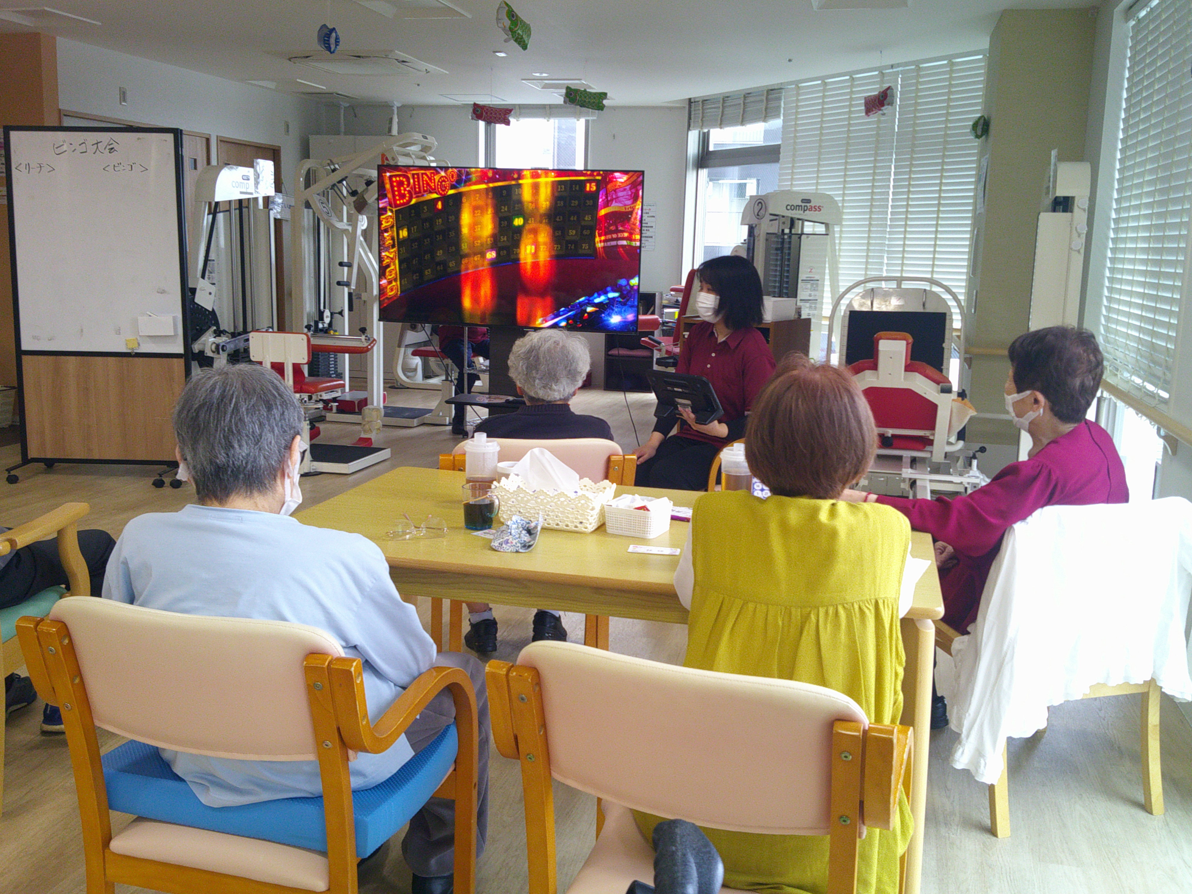 ご入居様が歌う向こうには鯉のぼりが雨の中を泳いでいました。