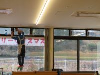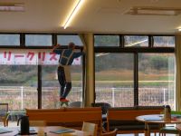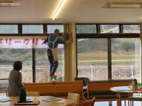 男性あみさんが脚立を使ってキレイに拭いてくださいました