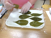 さくらもちを作る時にまずしなければならないことは、塩漬けされた桜の葉の塩抜きすることです。