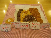 今日は、おやつバイキングの日です。皆様楽しみにしているおやつバイキング!今日のメニューは、ぼんち揚げ、ゼリー、せんべい、キャラメルコーヒー、カントリーマームです。皆様「美味しい」「いっぱいあるよね」と口々に言われています。おやつも大勢で食べると美味しいですよね。次も皆様に喜んで頂けるようなものを用意しますね(^^♪