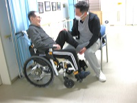 外気浴を致しました。歩行訓練中の男性陣をパチリ。