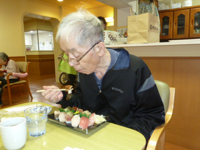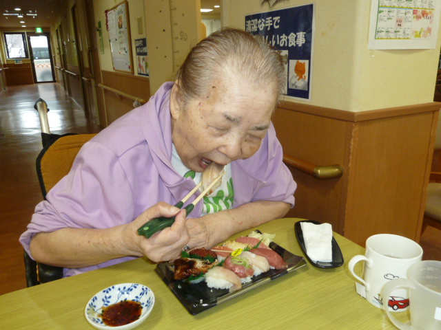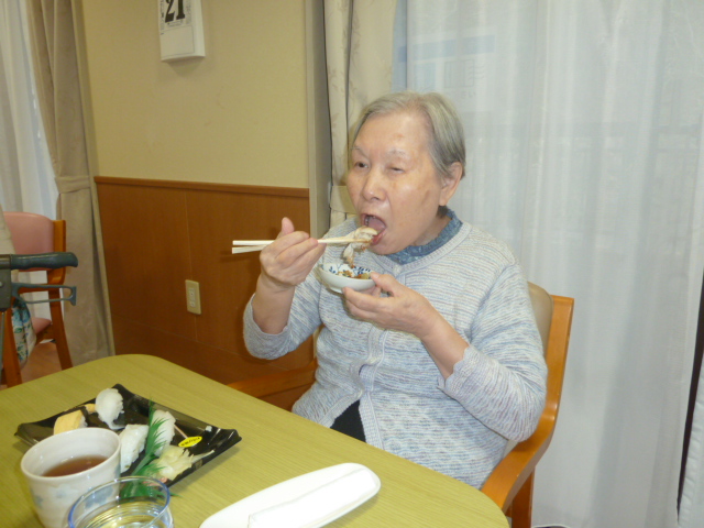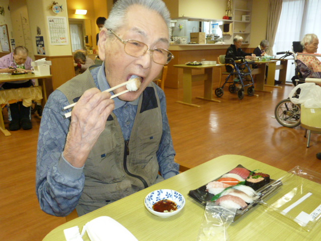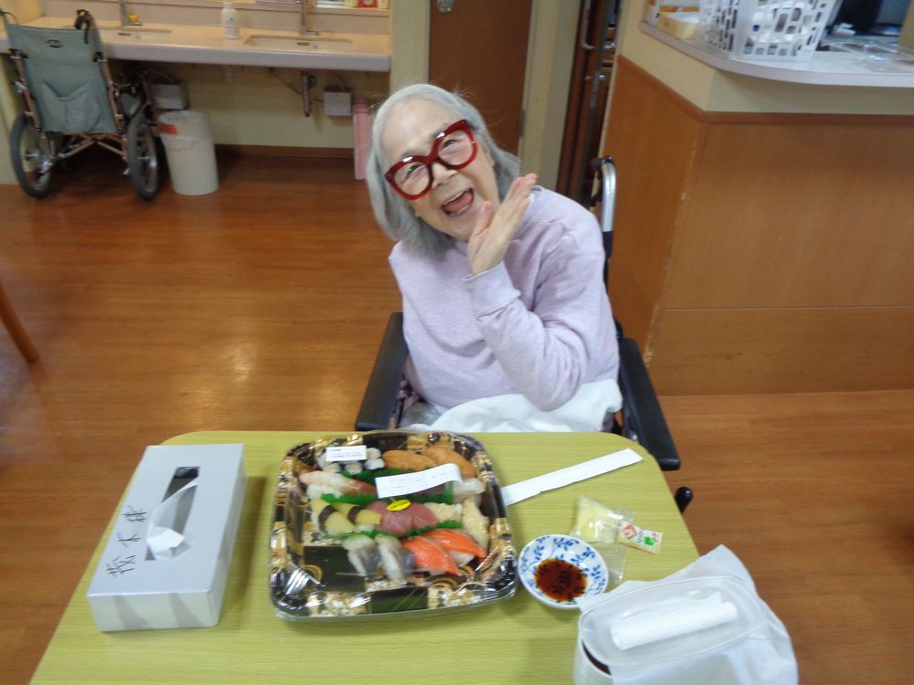 「え~今日は何でお寿司なの~?」言いながらお顔がメチャクチャ喜んでいました。
