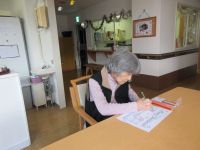 フロア内でカレンダーを見て予定をたてたり、ぬり絵をされていました。