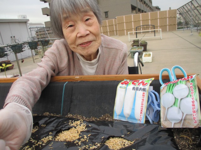 今日は屋上菜園に大根とかぶの種まきをしてくださいました!!