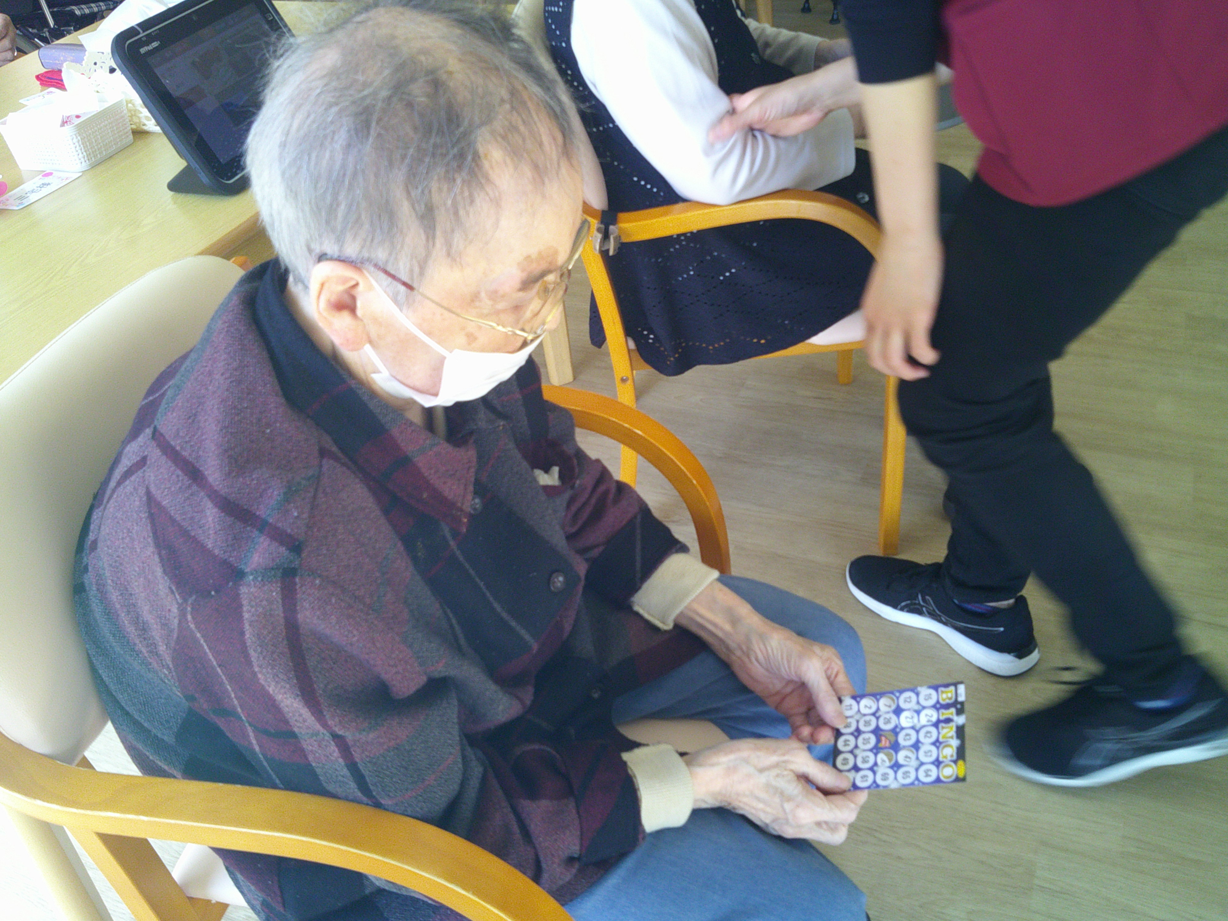 カメラを向けると「~さん撮られるよ!どうする?」(笑)の職員の問いかけには