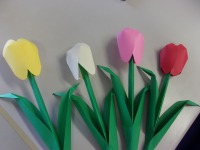 ピンクのお花紙を使って桜を作っていきますよ(^_-)-☆