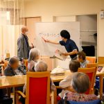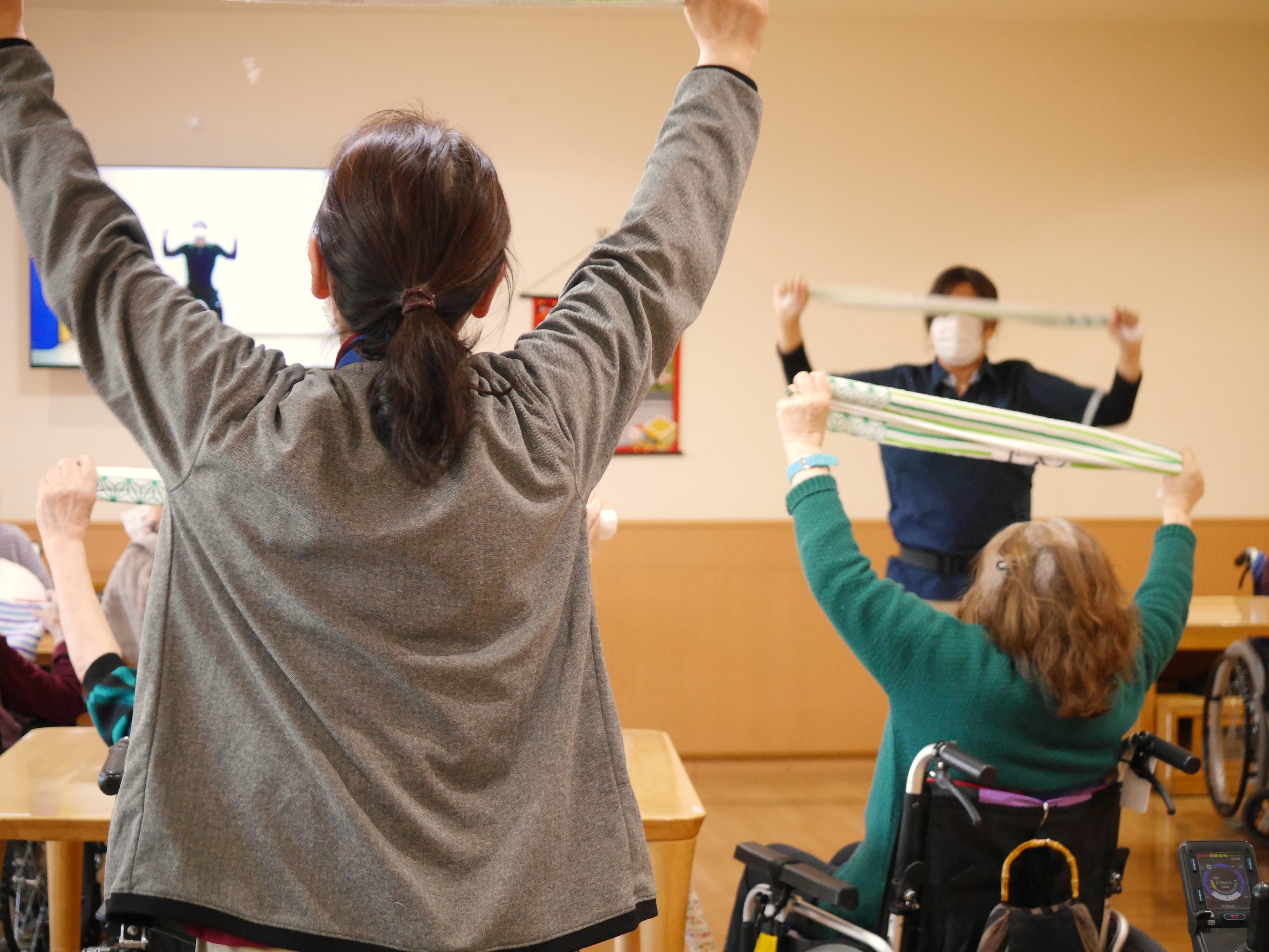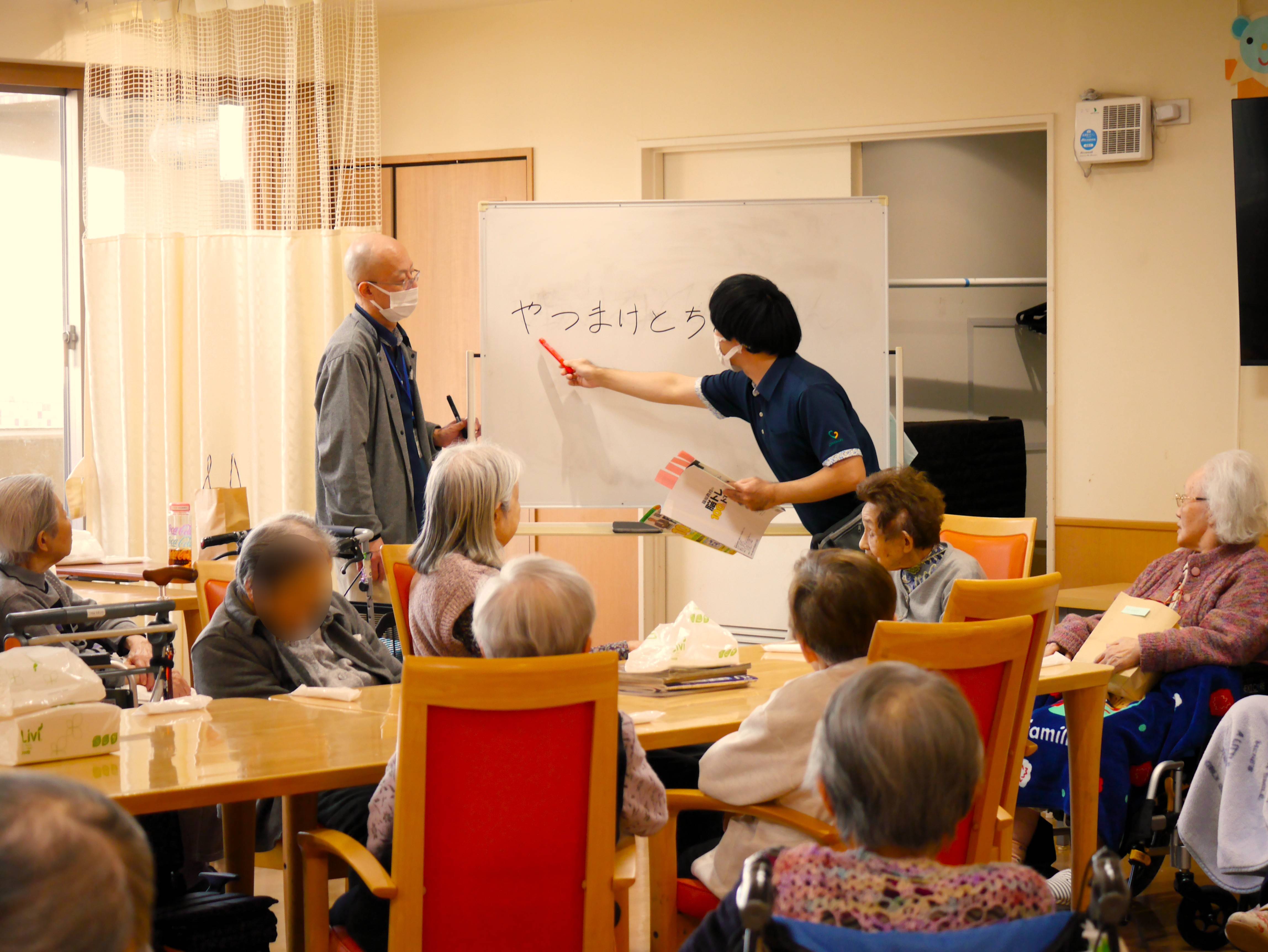 クイズをしたり体操をしたりして
