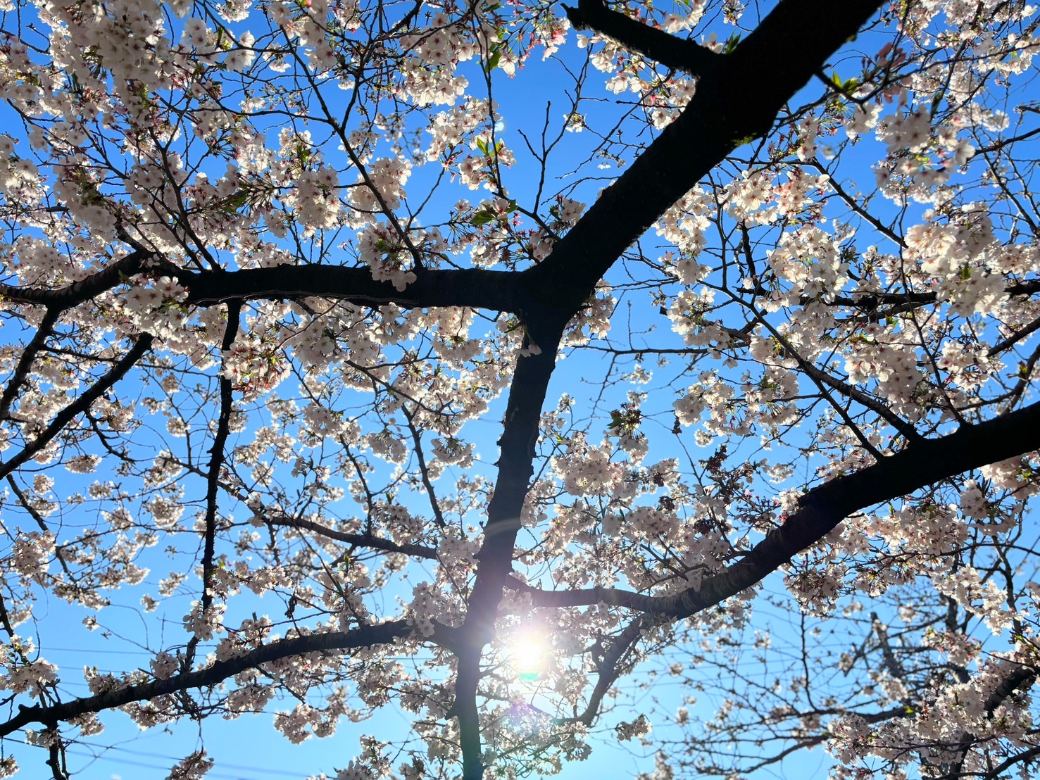 満開の桜の下で