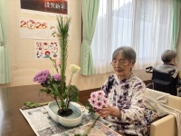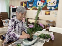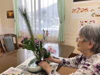 いつものようにハサミを上手に使ってパッパッと新年らしい生け花をしてくださいました。