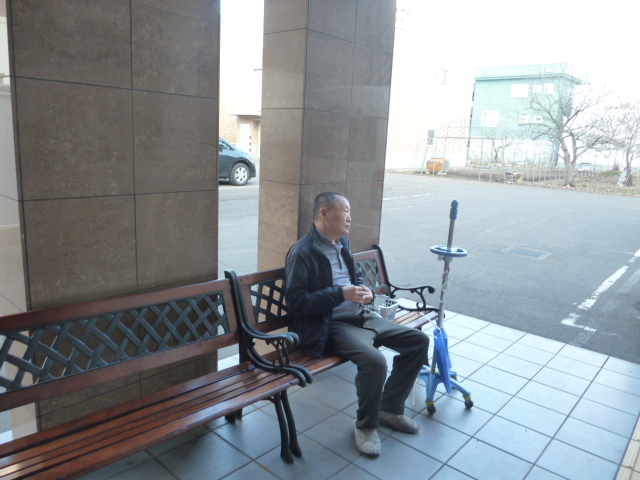 外に行こうとしている入居者様を見つけたので、写真を1枚と