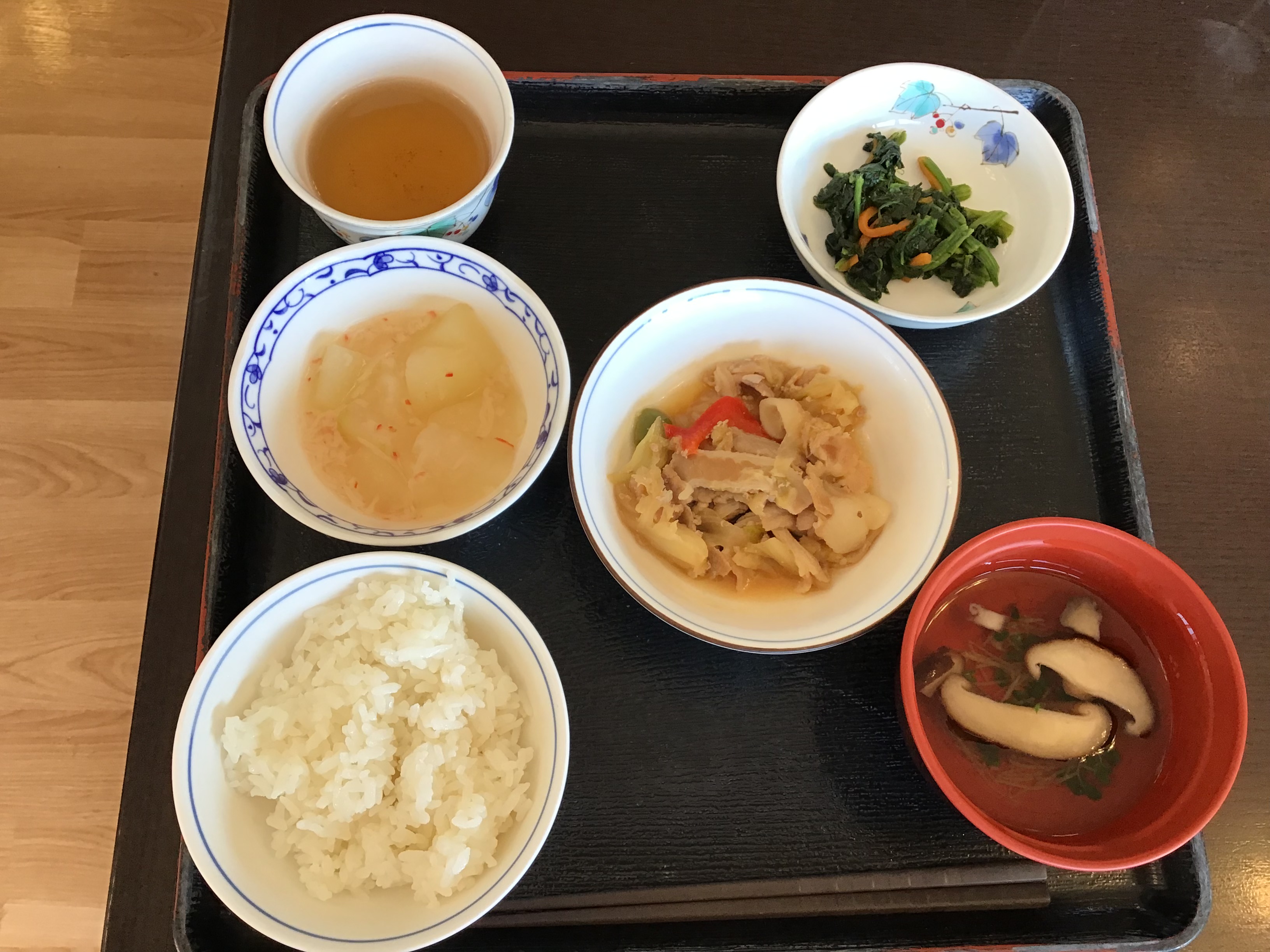 献立のメニューは、豚肉の味噌炒めと冬瓜の葛煮、青菜のナムルです。