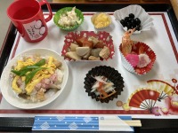 2階では、例年に引き続き今年も「おせち」を作りお正月の雰囲気を感じて頂きました。