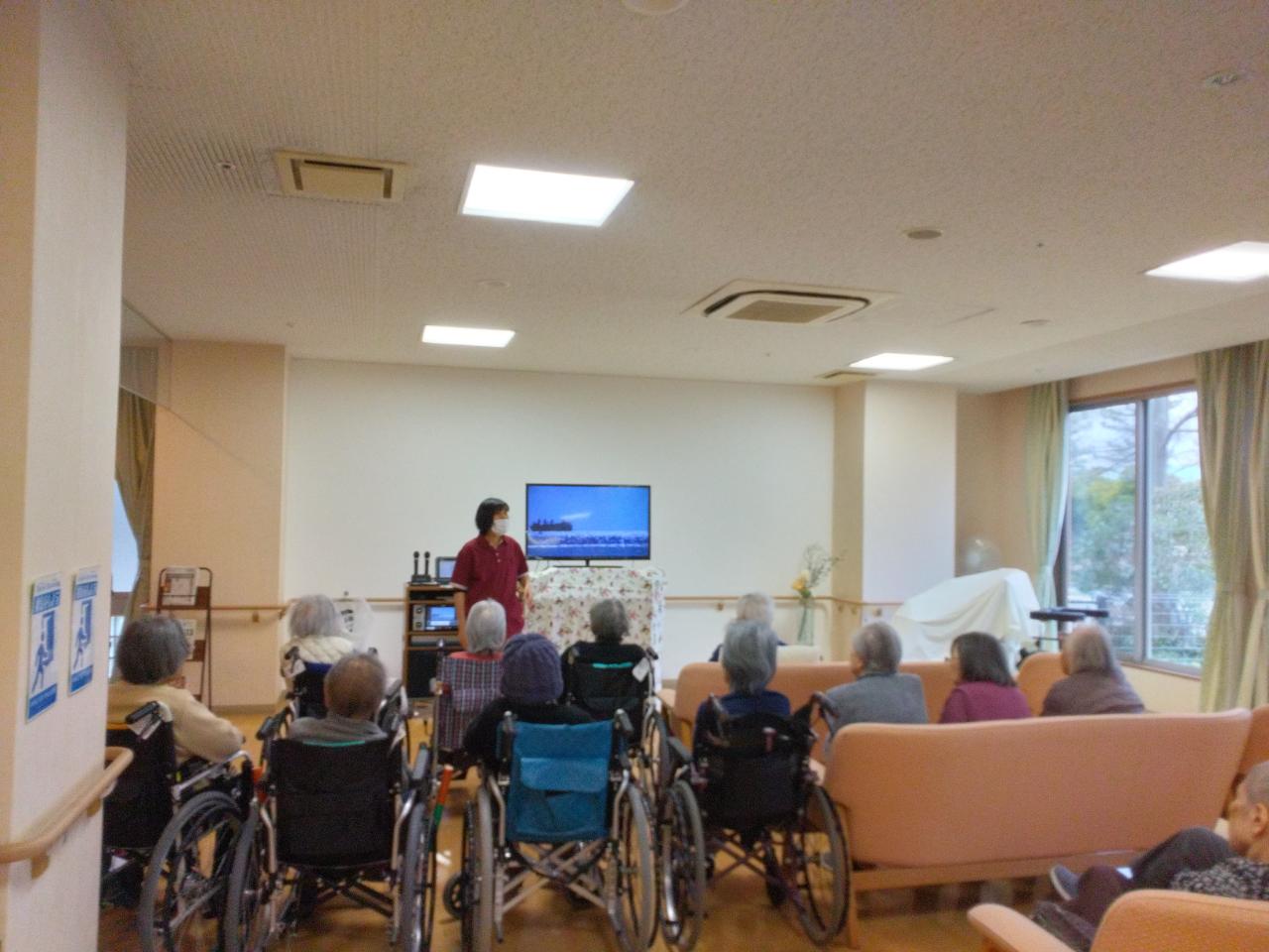 お正月行事での賑やかな雰囲気から一変、今日はゆったりとした音楽に合わせ、
