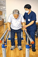 本日はおやつ前の時間にて平行棒を使った立ち上がり練習を行いました