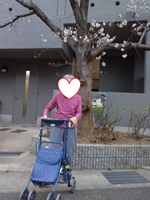 日曜日に面会に来てくださった、ご家族様と桜の木をバックにお写真を撮りました。