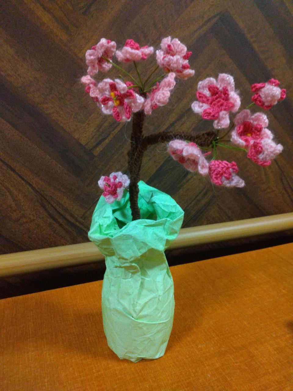 皆で作った桜の花が、少しずつ咲き始めました。