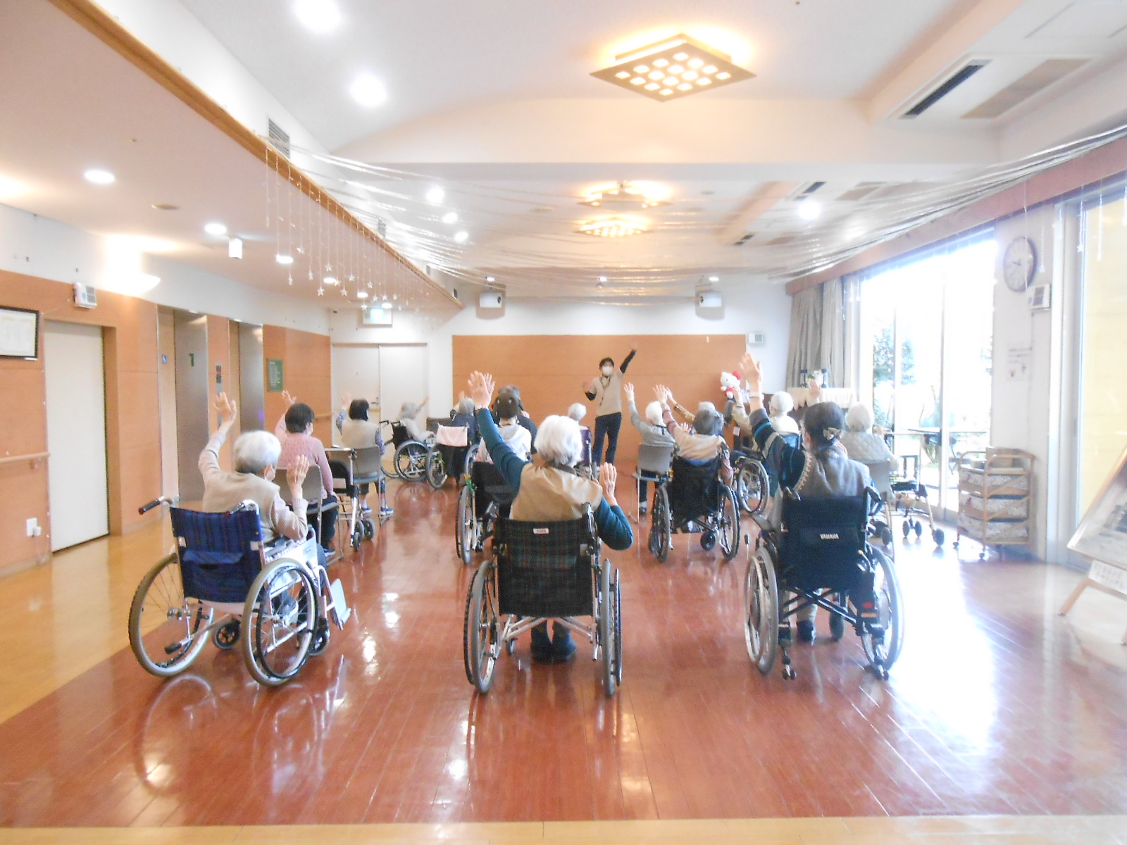 鈴を使って歌を歌ったり、東京音頭の時には歩きにくい方も立ち上がろうとされているくらい喜んで手を動かされていました。