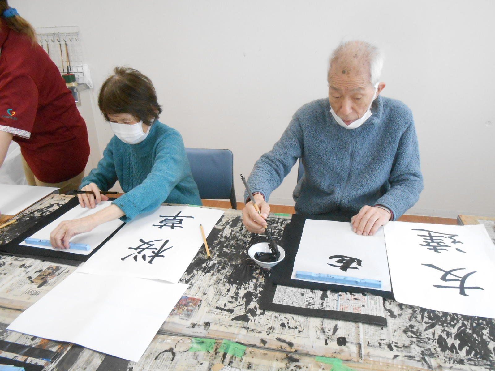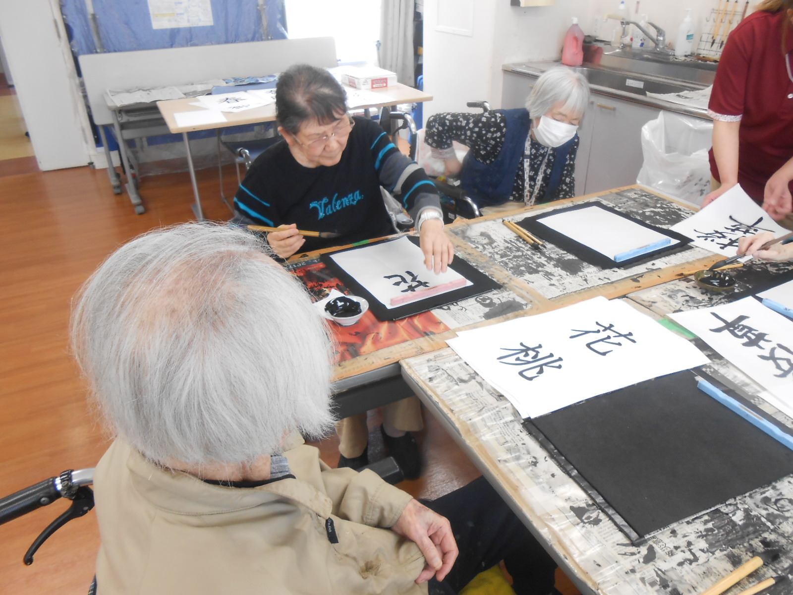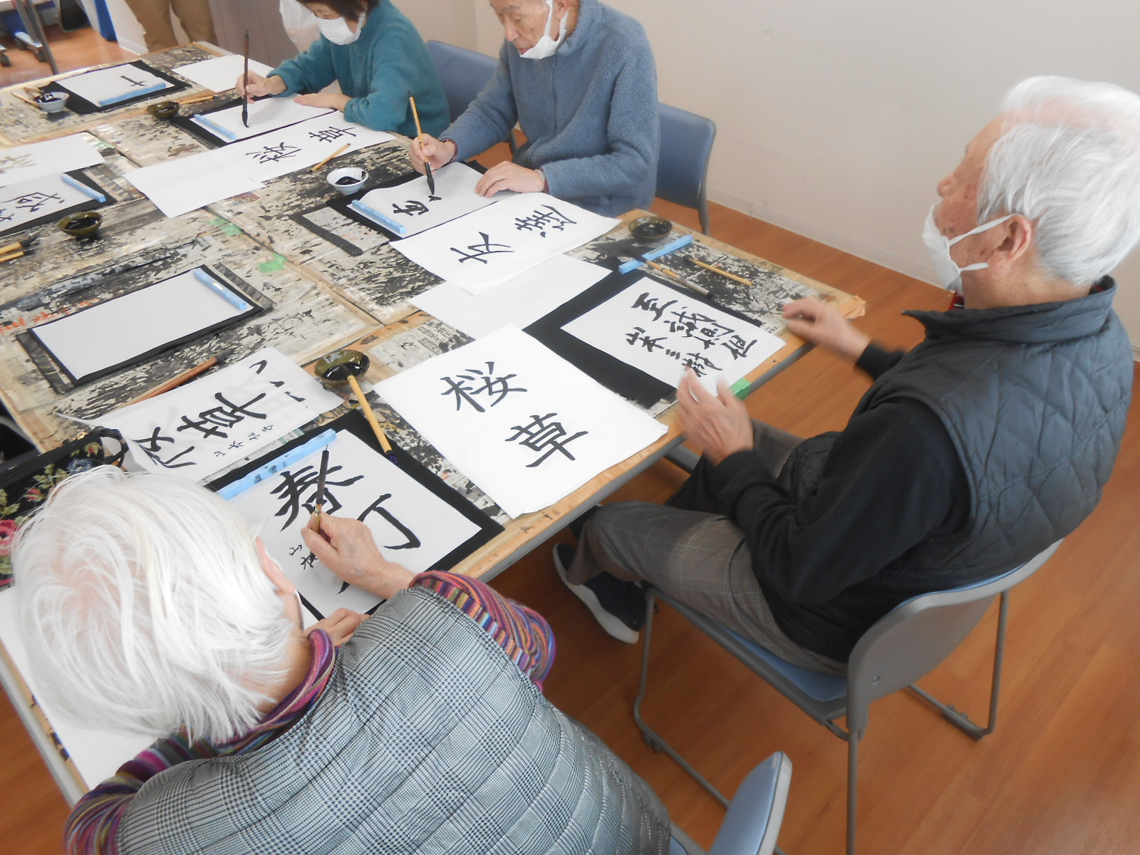 こんにちは、デイサービスです。今日はプリントを使って脳トレを行いました。穴埋めしりとり、数かぞえ、トンチ文字などです。わからない問題はお隣同士で相談したり、職員に答えのヒントを聞いたりと皆さんとても熱心に取り組んでくださいました。「自分で問題が解けるとすっきりするよ。」「今日の問題は難しかったけどこれくらいじゃないと脳トレにならないよね。」等とても前向きな感想を聞かせてもらえました(*^-^*)