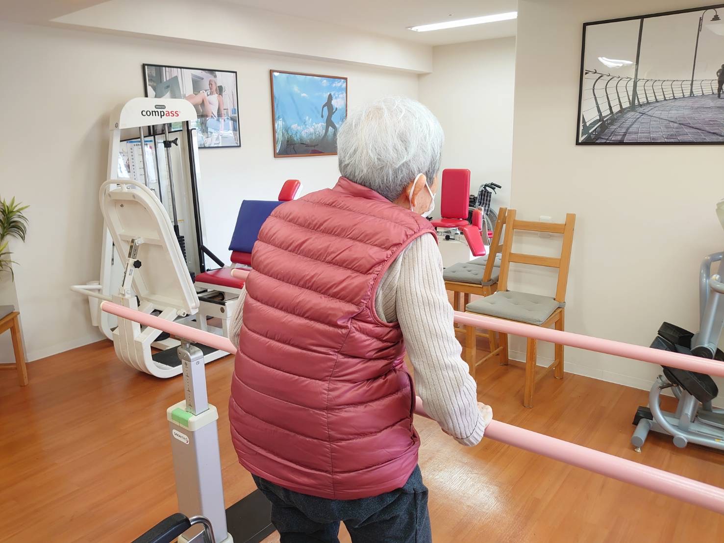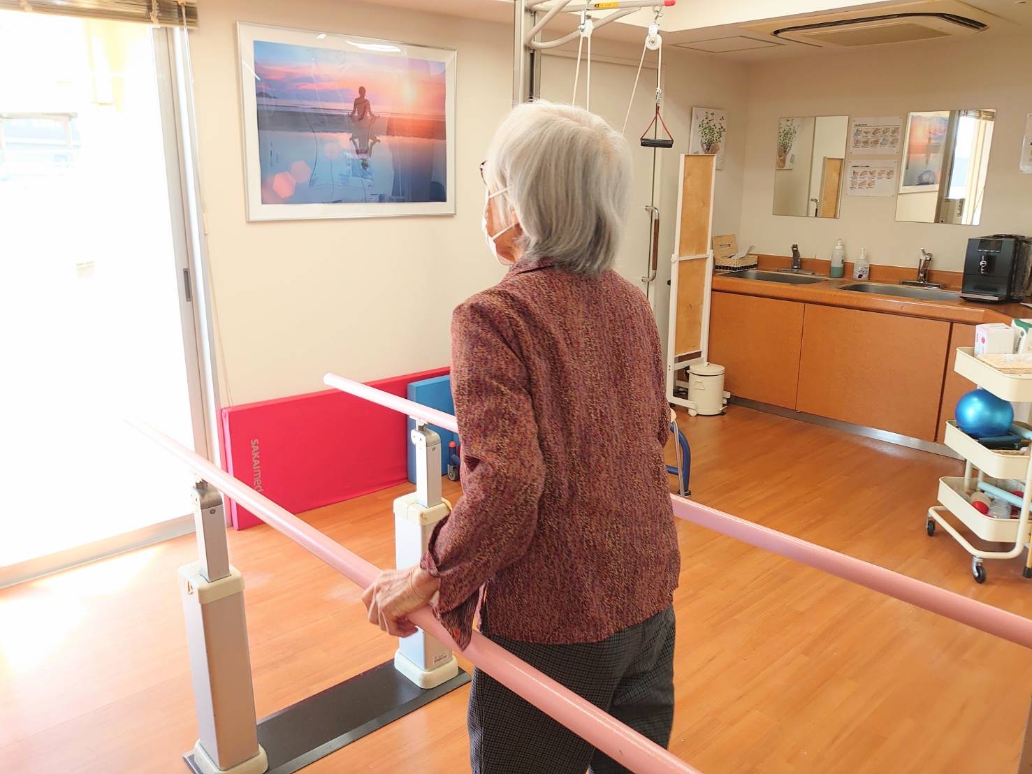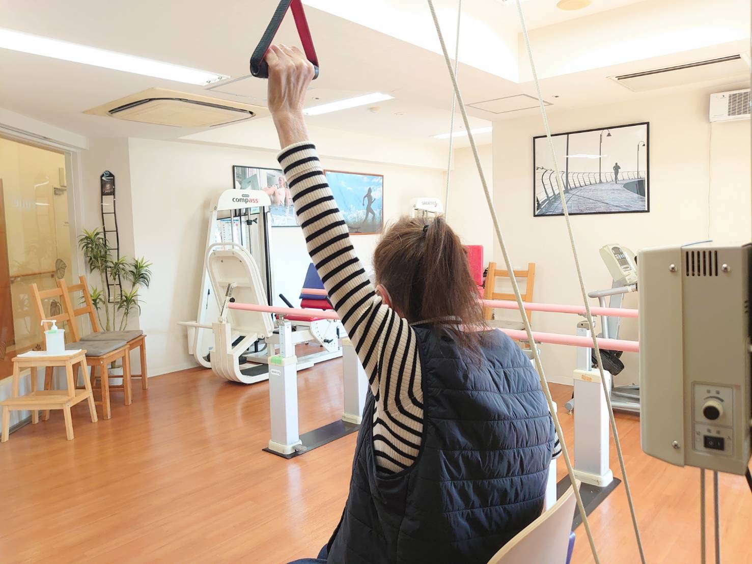 外でのお散歩、階段の昇り降りなどが練習になります。