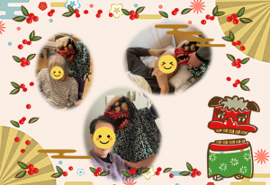 福笑いで完成した絵を見て大笑いしたり、カルタ大会で大激闘を繰り広げて、心も体もぽっかぽかです(*´▽`*)