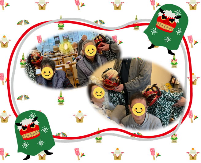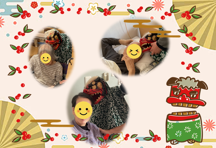 毎年恒例の元旦には、獅子舞が訪れて、みなさんのお部屋を