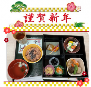 お赤飯や、おせち風の副菜などで、元旦の雰囲気を