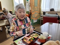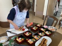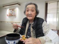 入居者様に喜んでいただき「美味しいね~」「きれいじゃね~」(⌒∇⌒)と、お正月気分を感じて頂きました。