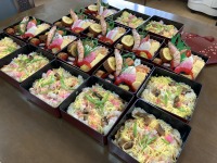 今日はスタッフが朝からはりきって皆様に喜んで頂こうとお節作りに精を出し、お重に詰めて色鮮やかなお節料理が完成!!